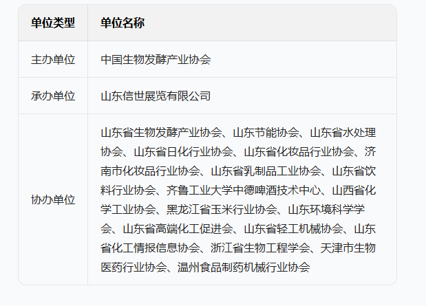 展會名稱:2026 第 16 屆國際生物發(fā)酵產(chǎn)品與技術(shù)裝備展覽會(濟南),同期舉辦玉米及淀粉深加工、生物醫(yī)藥、合成生物與智能制造、化學試劑、智慧實驗室建設(shè)、潔凈技術(shù)、精釀啤酒、精細化工 / 技術(shù)裝備 / 泵閥等主題相關(guān)活動。