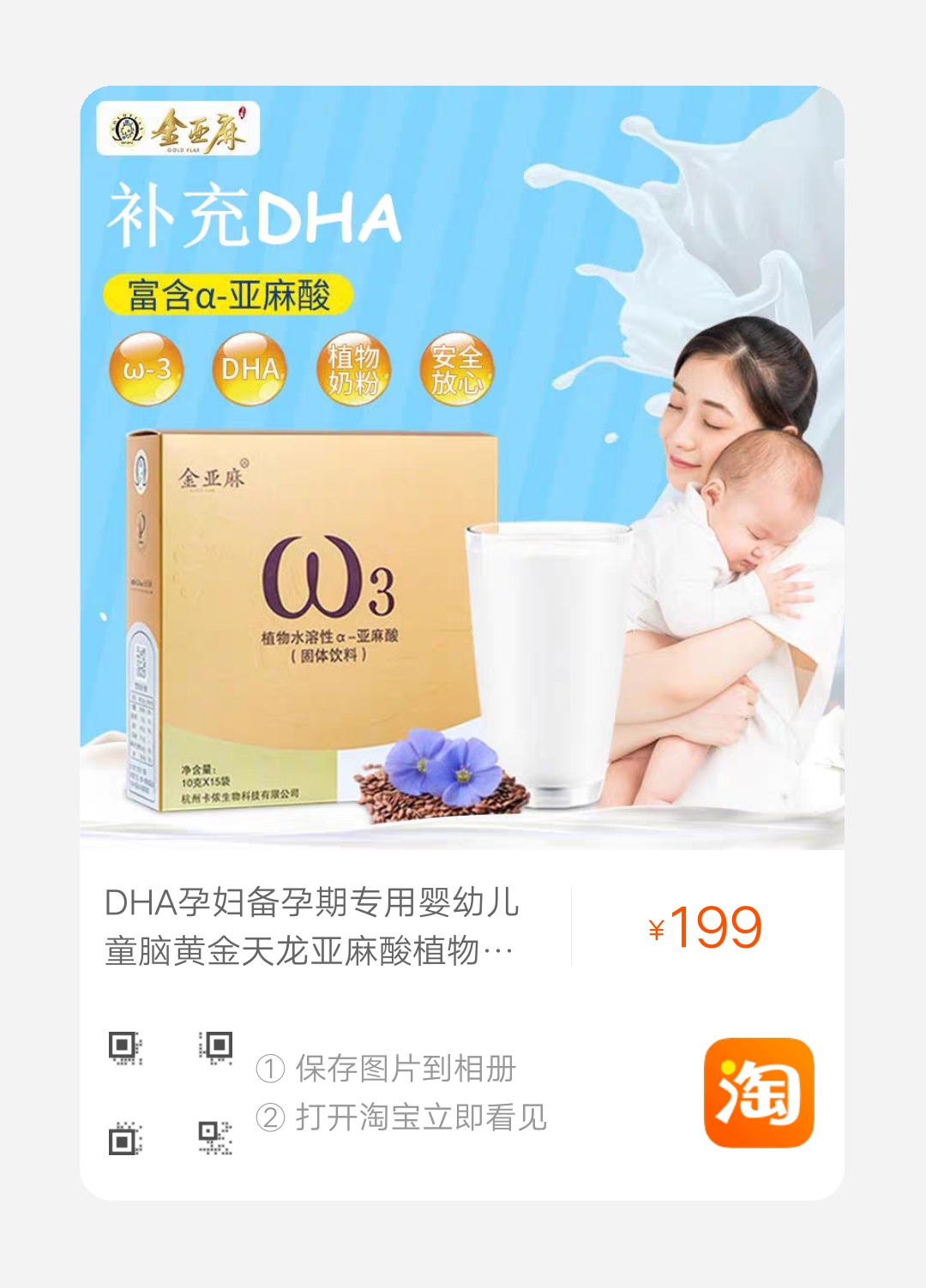 條件允許的情況下,可以從懷孕初期就開始吃金亞麻速溶粉,從而保證在孕期和哺乳期,體內(nèi)有充足的DHA供寶寶吸收。
